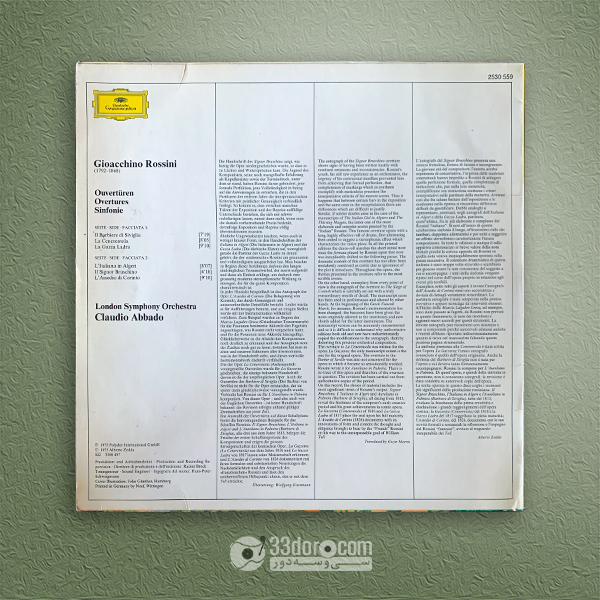 Rossini: Ouvertüren - Claudio Abbado ⸱ London Symphony Orchestra وضعیت: +VG فرمت: LP Stereo Genre: Classical برای سفارش تماس بگیرید LP