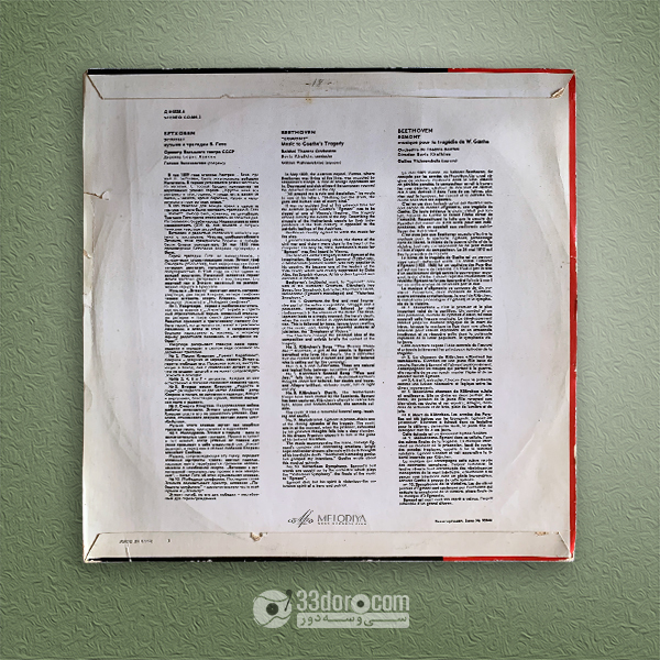 Beethoven: "Egmont" Music To Goethe's Tragedy, Op. 84 - Boris Khaikin ⸱ Bolshoi Theatre Orchestra وضعیت: +VG فرمت: LP Stereo Genre: Classical برای سفارش تماس بگیرید LP