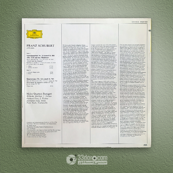 Der Tod Und Das Mädchen • Death And The Maiden (Streichquartett D-Moll • String Quartet In D Minor) / Quartettsatz C-Moll • Quartet Movement In C Minor - Franz Schubert, Melos Quartett Stuttgart وضعیت: +VG فرمت: LP Stereo Genre: Classical برای سفارش تماس بگیرید LP