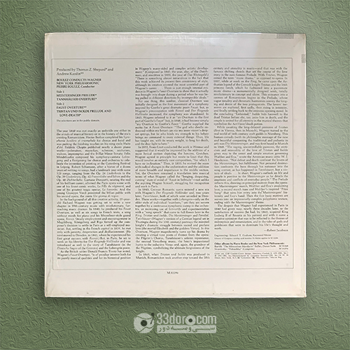 Tristan Und Isolde Prelude And Love: Death; Meistersinger Prelude; Tannhauser Overture; Faust Overture - Boulez conducts Wagner ⸱ New York Philharmonic وضعیت: +VG فرمت: LP Stereo Genre: Classical ۱,۹۰۰,۰۰۰ تومان افزودن به سبد خرید LP