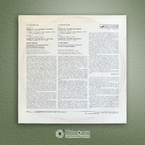 P. Tchaikovsky: Concertos Nos. 1 And 3 For Piano And Orchestra - Victor Eresko ⸱ The Moscow Symphony Orchestra ⸱ Veronica Dudarova وضعیت: +VG فرمت: LP Stereo Genre: Classical ۱,۸۵۰,۰۰۰ تومان افزودن به سبد خرید LP
