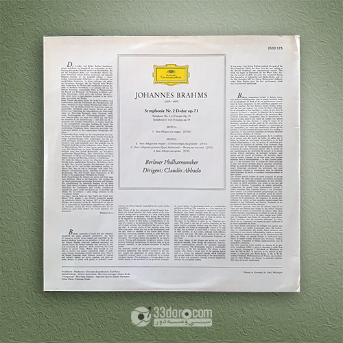Brahms: Symphonie Nr. 2 - Claudio Abbado ⸱ Berliner Philharmoniker وضعیت: NM فرمت: LP Stereo Genre: Classical ۱,۹۵۰,۰۰۰ تومان افزودن به سبد خرید LP