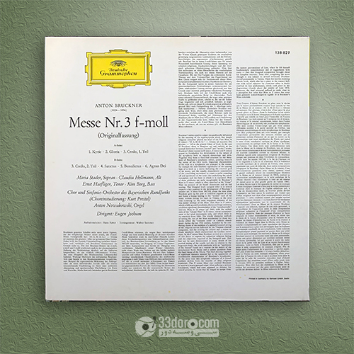 Bruckner: Messe Nr.3 ‧ F-Moll - Maria Stader ‧ Claudia Hellmann ‧ Ernst Haefliger ‧ Kim Borg ‧ Eugen Jochum وضعیت: NM فرمت: LP Stereo Genre: Classical ۱,۹۵۰,۰۰۰ تومان افزودن به سبد خرید LP