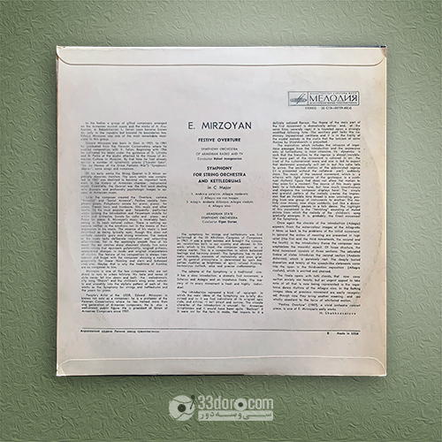 Festive Overture ⸱ Symphony For String Orchestra And Kettle-Drums - E. Mirzoyan وضعیت: NM فرمت: LP Stereo Genre: Classical ۱,۹۰۰,۰۰۰ تومان افزودن به سبد خرید LP