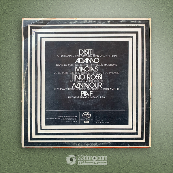 Distel ⸱ Adamo ⸱ Macias ⸱ Tino Rossi ⸱ Aznavour ⸱ Piaf - Various Artists وضعیت: G فرمت: LP Compilation Genre: Pop برای سفارش تماس بگیرید LP