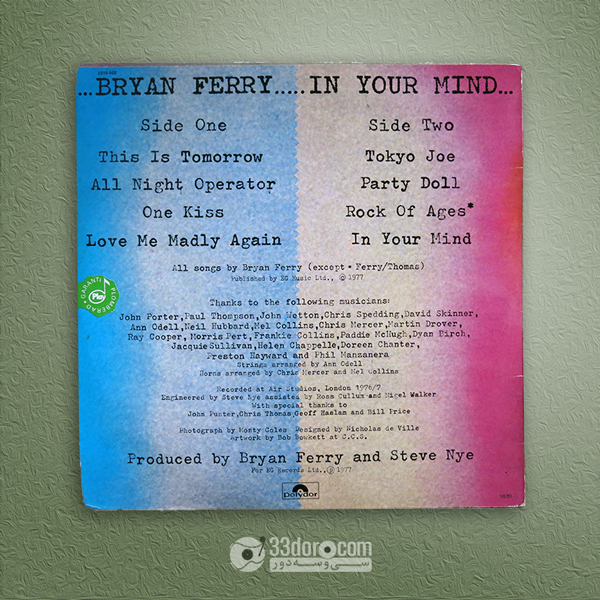 .Written, recorded and mixed at The Farm Surrey, 85/86
