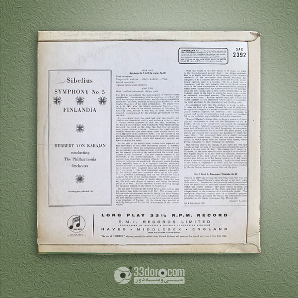 Sibelius, Symphony No. 5 In E Flat Major Op. 82 / Finlandia - Karajan, The Philharmonia Orchestra ۱,۸۵۰,۰۰۰ تومان افزودن به سبد خرید LP