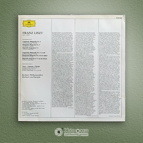 Ungarische Rhapsodien Nr.4 U. 5 ⸱ Hungarian Rhapsodies ⸱ Tasso: Lamento E Trionfo - Franz Liszt ⸱ Berliner Philharmoniker ⸱ Herbert von Karajan ۱,۹۵۰,۰۰۰ تومان افزودن به سبد خرید LP