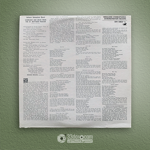 Gatefold sleeve with a 8-sided insert attached to inner spine with Liner Notes in German, English, French and Italian, Lyrics in Latin, English, German and French